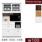 15日P14%〜 食器棚 収納 100cm幅 レンジボード 完成品 白 木製 ナチュラル ブラウン