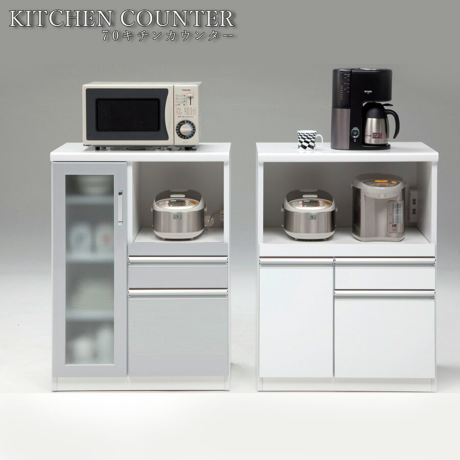 1日限定15%offクーポン キッチンカウンター 幅70 おしゃれ キッチン収納 レンジ台 完成品 木製 日本製 コンセント付き 北欧 モダン 奥行45 白 ホワイト 収納家具 大川家具