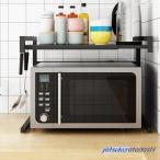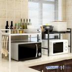 レンジ台 レンジ上ラック 伸縮式 棚 家電収納 キッチンラック 電子レンジボード 整理棚 調味料置き 調理器具掛け フック付き スチール インテリア雑