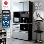 日本製 食器棚 レンジ台 キッチンボード 幅100 100 完成品 おしゃれ 大型レンジ対応 収納 スライド棚 国産 組み立て不要 鏡面 大容量 コンセント付 キッチン収納