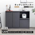 キッチンカウンター 120 幅 キッチン 作業台 セラミック調 ブラック レンジ台 完成品 スリム 食器棚 キッチンボード ロータイプ キッチン収納 炊飯器 引き出し