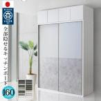 キッチンボード 160cm幅 レンジ台 キッチン収納 日本製 大川家具 完成品 レンジが隠れる 隠せる 食器棚 クリスタルトップガラスの引き戸