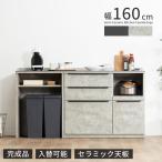 キッチンカウンター 160幅 完成品 石目調 セラミック 天板 レンジ台 おしゃれ ブラック グレー 黒 灰 奥行42cm コンセント付き 引き出し スライドカウンター