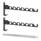 uxcell 折りたたみ式衣類ハンガーホルダー 衣類乾燥ラック 壁取り付け式 アルミ合金製 伸縮式 折りたたみ式 省スペース 40cmロッド付き 黒