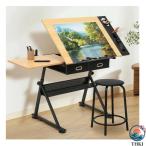 製図テーブル スツール付き 高さ調節可能 傾斜 卓上アートデスク 収納引き出し 付き アーティストスケッチワークステーション お絵かき 執筆 ホームオフィス用