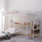 ロフトベッド ハイベット おしゃれ 机 デスク ラック 棚 北欧モダン メッシュ床 スチール ウッドパネル 階段 木 耐荷重80kg