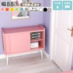 キャビネット 完成品 北欧 おしゃれ 引き戸 収納 飾り棚 玄関 可愛い ピンク ブルー コンパクト 脚付き 北欧風 約幅90 約90cm ☆