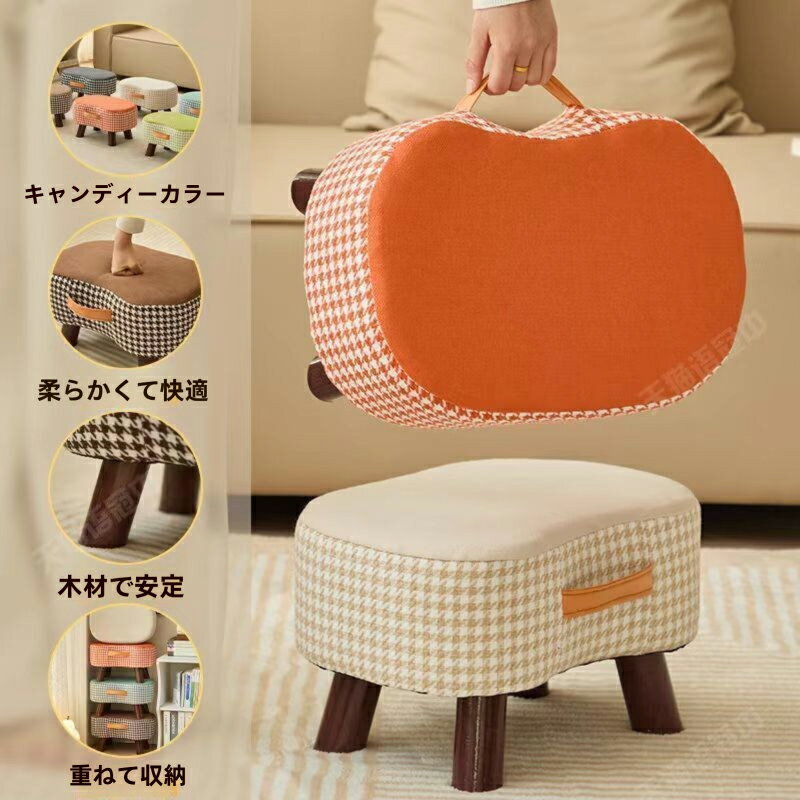 【6%OFFクーポン】木製スツール スツール 木製 持ち手付き イス チェア オットマン スタッキング 低い 腰掛け ファブリック ふかふか 玄関 靴を履き替える 椅子 踏み台 飾り台 1人掛け 1人用 小さい ローソファー ソファ フロアソファ かわいい 北欧 おしゃれ 千鳥格柄 全6色