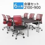 椅子ワインレッド10/21入荷 法人様限定 会議テーブルセット 6人用 テーブル チェア 会議テーブル 2100×900 メッシュチェア 腰楽 ローバック 6脚