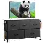 WLIVE チェスト タンス キャスター付き サイドポケット付き 2段5杯 箪笥 ローチェスト リビング収納 おしゃれ 収納チェスト 布製 引き