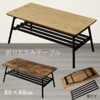 折りたたみテーブル 棚付 80cm幅 センターテーブル おしゃれ モダン 折れ脚 木目柄天板 スチール脚 棚取り外し可 爆買