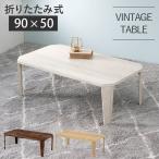 (タイムセール中) ローテーブル 折りたたみテーブル 90×50cm 角型 ホワイトウォッシュ ビンテージ風
