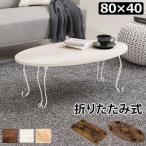 (タイムセール中) ローテーブル 折りたたみテーブル 80×40cm 丸型 ホワイトウォッシュ ビンテージ風