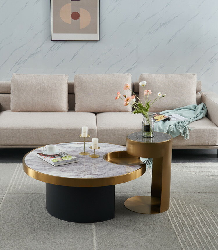 A002456高級大理石サイドテーブル2点セット.コンソールテーブル 玄関テーブル 飾り台 ローテーブル リビングテーブル ステンレス