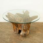チーク無垢材 原木ローテーブル 切り株テーブル 無垢 木の根 ガラス天板 幅90cm アジアン家具 バリ家具 【AS-308-W90】