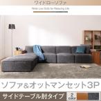 (タイムセール中) ローソファー&オットマンセット 3人掛け おしゃれ サイドテーブル肘