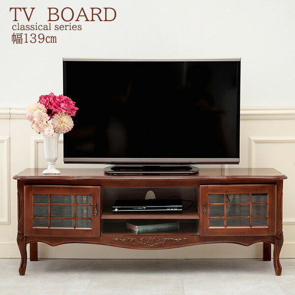 【30日★5%OFFクーポン】 格調高く 猫脚 テレビ台 完成品 おしゃれ テレビボード ローボード 木製 クラシック リビングボード ガラス 扉付き エレガント 猫足 アンティーク クラシック 家具 幅140