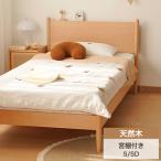 期間限定セール★ベッドフレーム 木製 ローベッド けやき無垢材 天然木 コンセント 一人暮らし 宮付き 北欧 ベッドボード フレーム単品 幅120cm