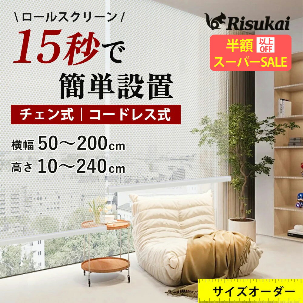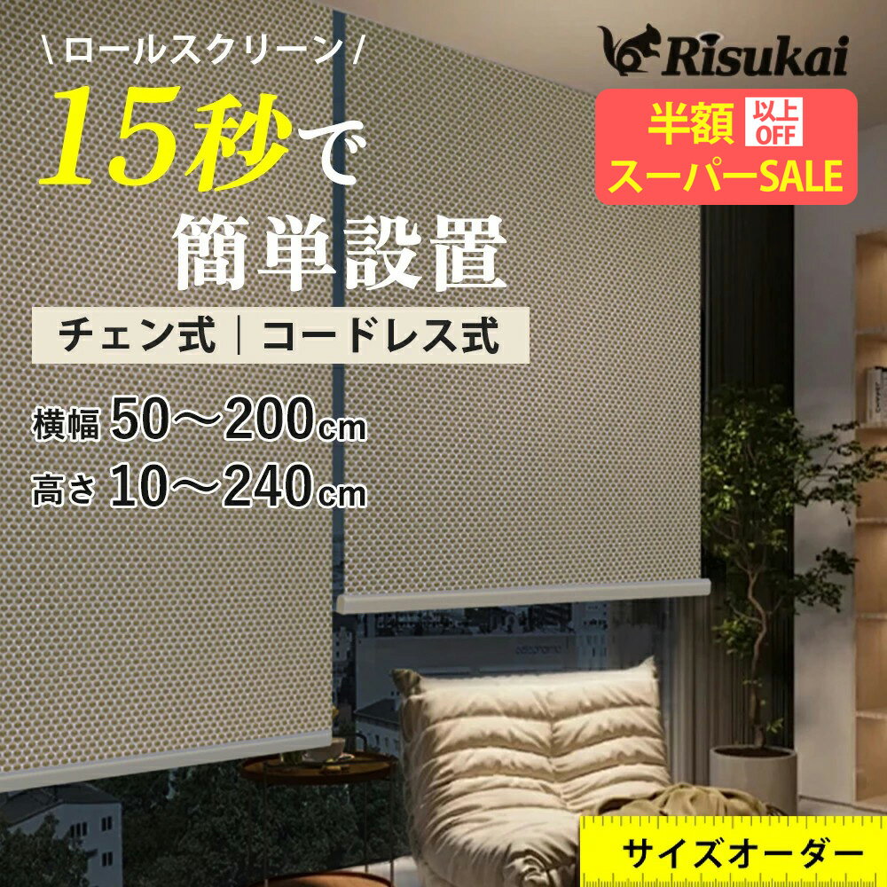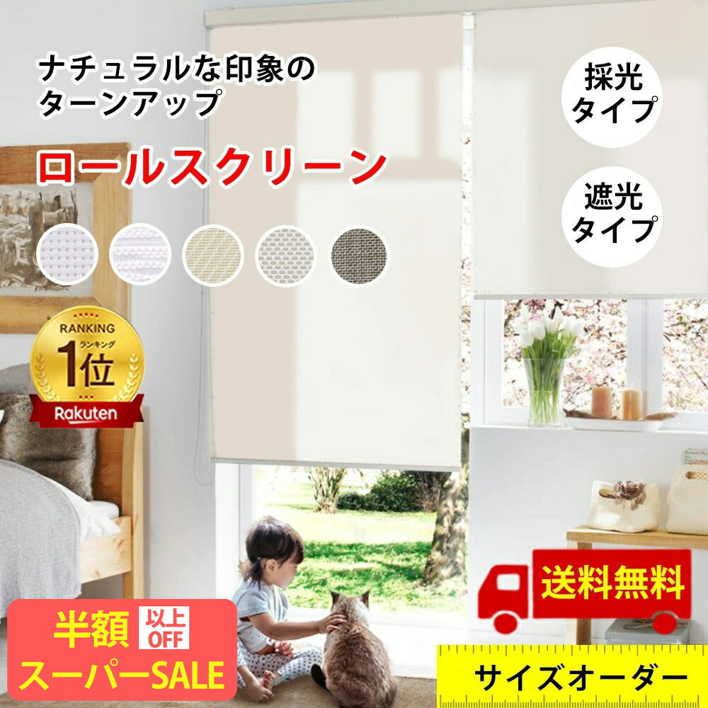 【創立 25 周年記念!先着6名様10%OFFクーポン】 ロールスクリーン ロールカーテン 遮光 1級 採光 防炎 チェーン式 コードレス式 小窓 カーテン 穴あけ不要可能 賃貸OK サイズオーダー 無地 UVカット カーテンレールに取付 遮熱 簡単設置