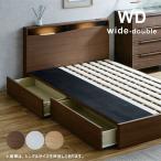 ワイドダブルベッド すのこ 引き出し収納 木製 宮棚 コンセント 照明 北欧風 高さ調節 おしゃれ