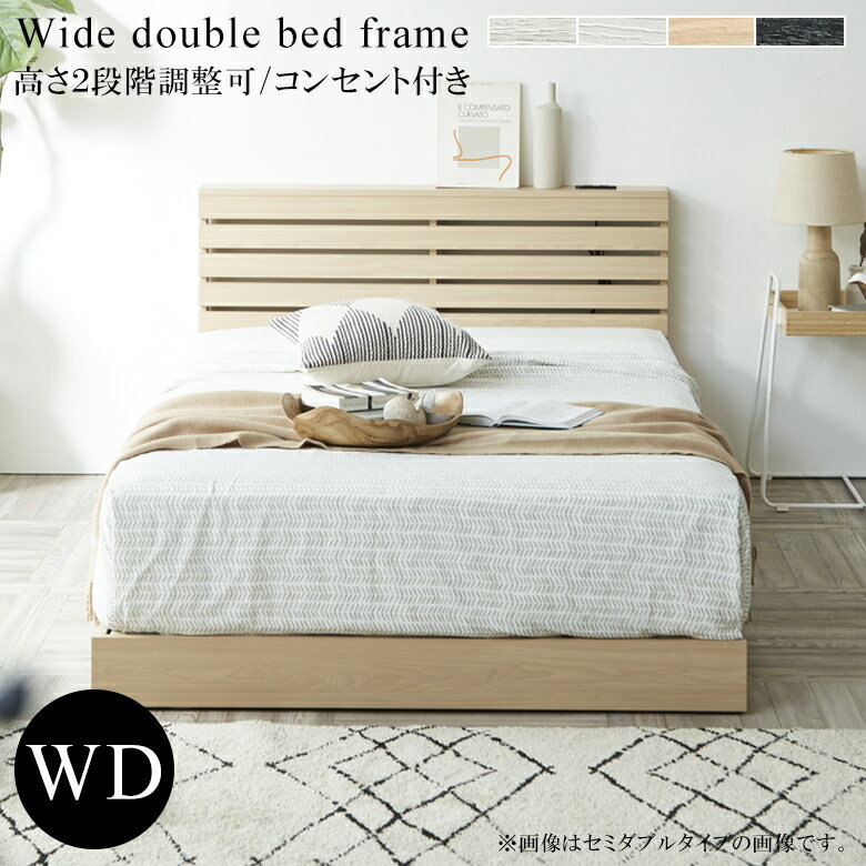 ローベッド ワイドダブル フレーム すのこ 高さ調節 ベッド ワイドダブルベッド 宮付き フロアベッド すのこベッド コンセント 棚付き 宮棚 ナチュラル ホワイト 白 木目調 木製 脚付き ワイドダブルベット ローベット すのこベット メラミン おしゃれ 北欧 カジュアル