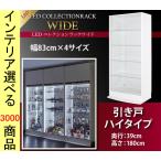 コレクションラック 83.1×29×182cm 照明付き 引き戸 ハイタイプ 浅型 鍵付き インドネシア製 ホワイト・ブラック色 YC8500023834