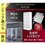 コレクションラック 83.1×39×182cm 照明付き 引き戸 ハイタイプ 深型 鍵・背景鏡付き インドネシア製 ホワイト・ブラック色 YC8500023841