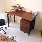 パソコンデスク デスクワゴン ウォルナット ブラウン 天然木 木製 おしゃれ 北欧 カジュアル テレワーク 在宅勤務 受験勉強 レガート 2点セット