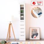 隙間収納 幅30cm おしゃれ 棚 開き戸 ガラス戸 引出し スリム 白 鏡面 コンパクト すき間ワゴン 食器棚 ハイタイプ 北欧家具 人気