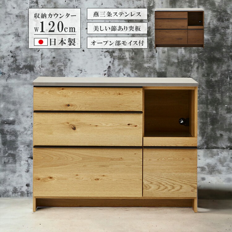 【12/4 20:00から使える★4h限定5%offクーポン配布中】 キッチン収納 キッチンカウンター 食器棚 幅120cm 完成品 シンプル 国産 日本製 ロータイプ 120 おしゃれ 北欧 引き出し モイス付き キッチンボード 高級感 オーク ナチュラル ウォールナット ブラウン 木製 開梱設置