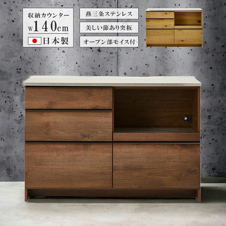 【12/3から使える☆2%offクーポン配布中】 キッチンカウンター 幅140cm キッチン収納 収納 キッチンボード おしゃれ 北欧 食器棚 シンプル カウンター 国産 日本製 140 高級感 引き出し オーク ナチュラル ウォールナット ブラウン 選べる2色