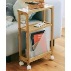 家具 魅せる収納 天板タイルがかわいいキャスター付き天然木スリムワゴン