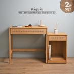 コンパクトデスク+サイドワゴン【2点セット】ドレッサー 78cm幅 パソコンデスク ナチュラル 一人暮らし 木製 チーク無垢材 ETT438SET【爆買】