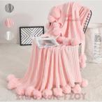 タオルケット シングル ブランケット ダブル お昼寝 毛布ベッドカバー ポンポン付きコットン 冷房対策 2枚 ソファーカバー