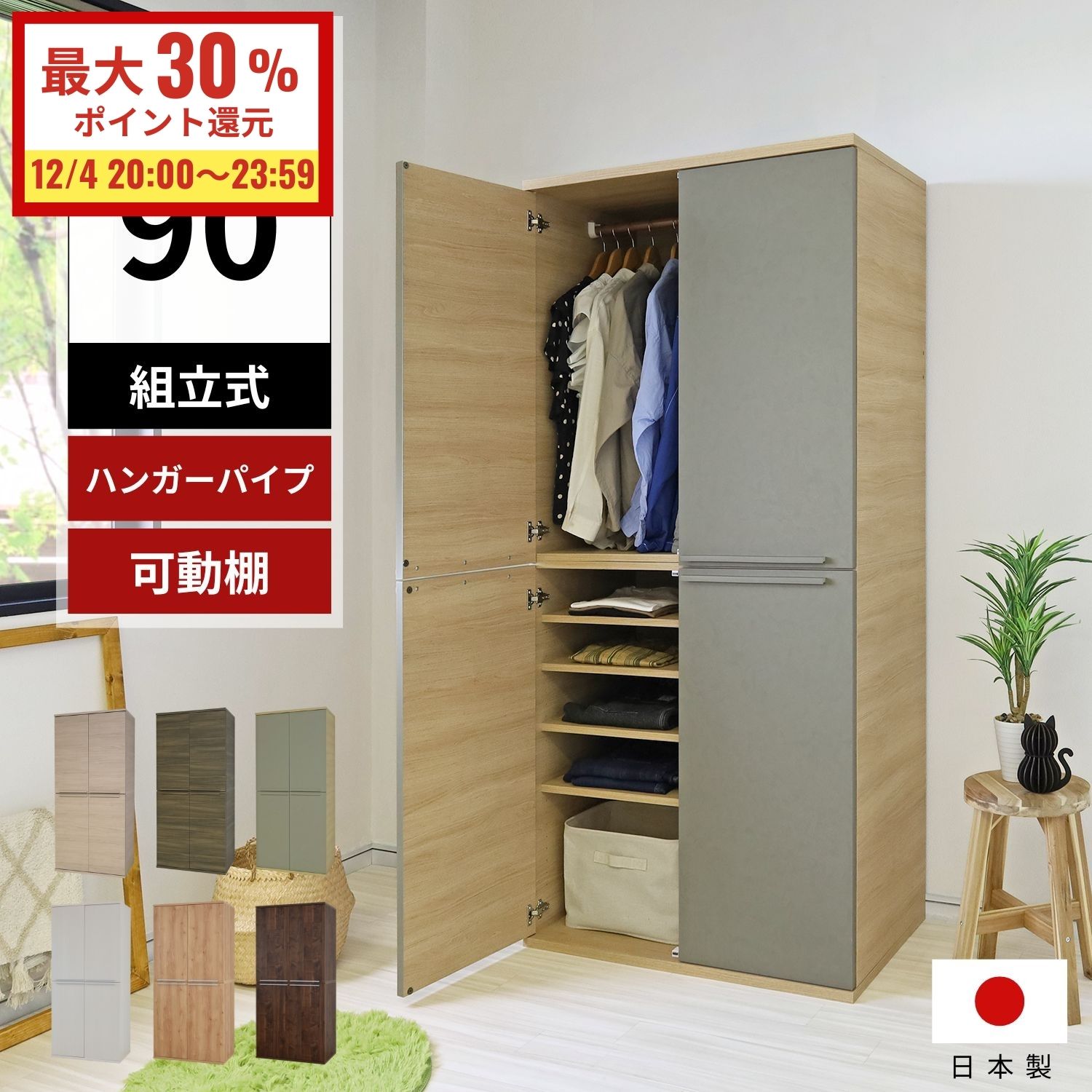 日本製 ワイド ワードローブ 幅88.6 大容量 タンス 洋服タンス コートハンガー 収納 クローゼット 収納 衣類収納 国産 おしゃれ 北欧 シンプル(代引不可)【送料無料】