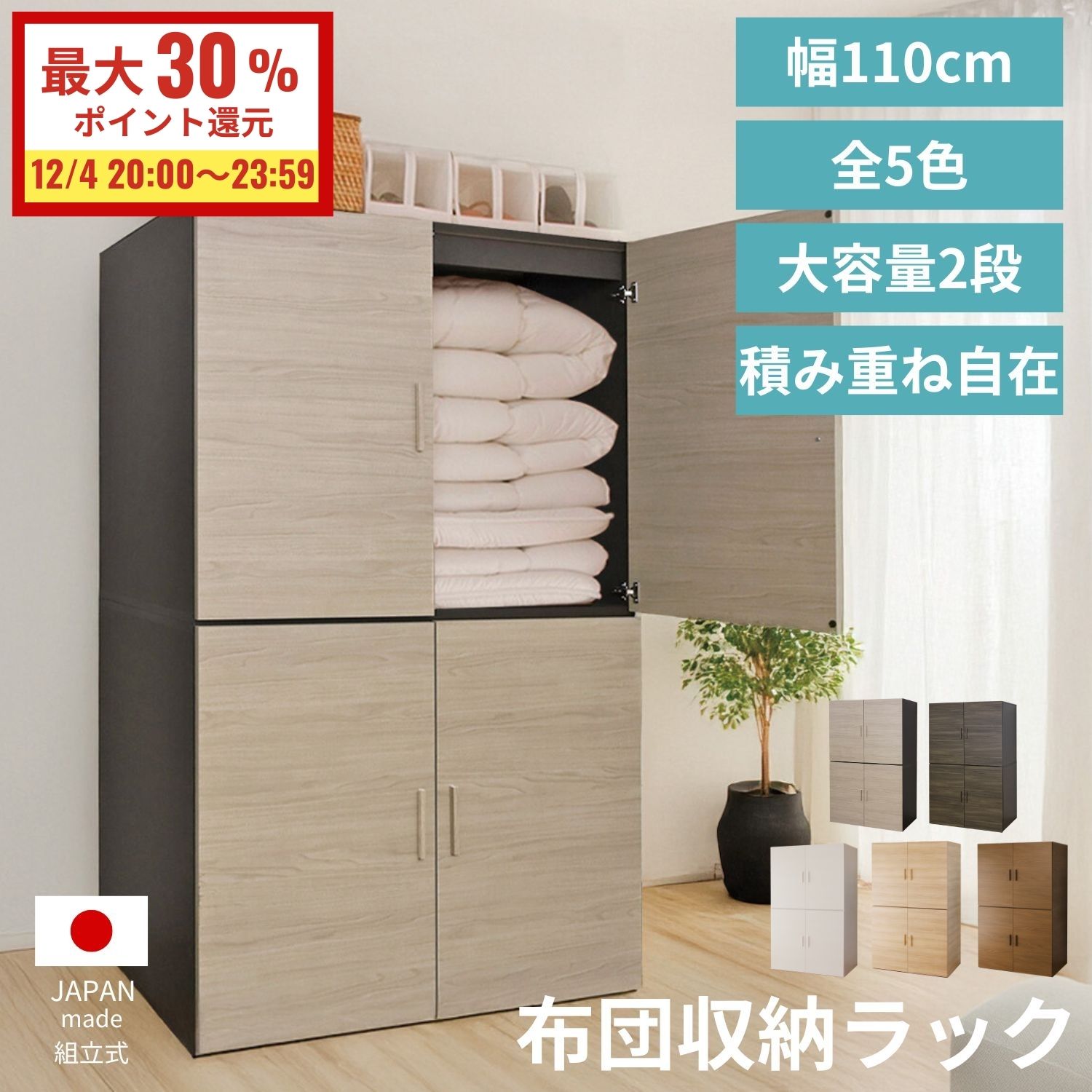 [最大P30%還元 12/4 20:00~23:59]ランキング1位常連!布団タンス 日本製 幅110cm 布団収納 ワードローブ クローゼット 収納 横置き 吊り下げ収納 押入れ収納 布団 衣類 木製 箪笥 ラック 布団ケース セパレート 扉付き 寝室収納 家電収納 収納 おしゃれ ts-futon b-room