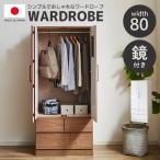 ワードローブ 完成品 クローゼット 収納 木製 服吊り 幅80 鏡付き タンス 洋ダンス 洋服箪笥 北欧 大川家具