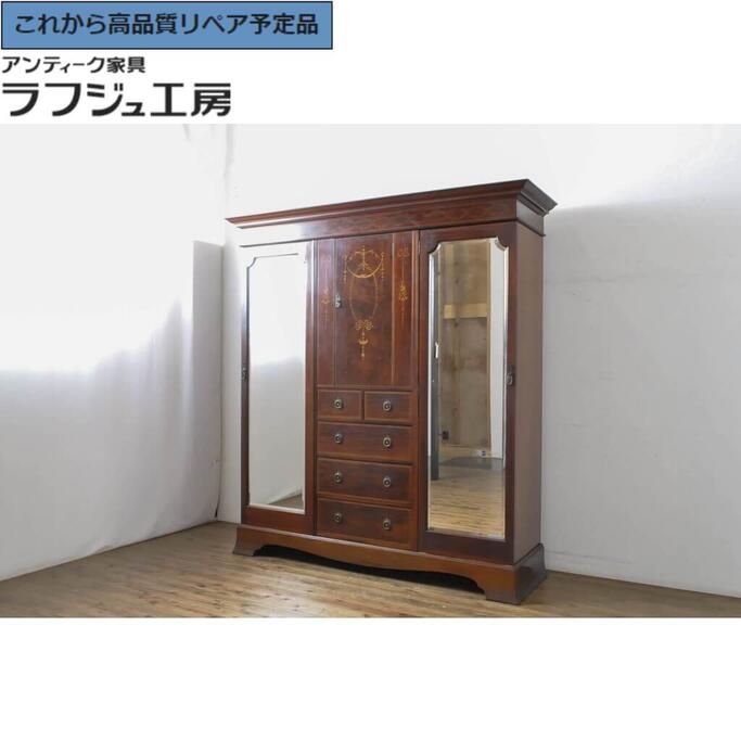★事前問合せ必須★ イギリスアンティーク 高級ワードローブ マホガニー材 象嵌入り 組立式 収納棚 戸棚 チェスト ヨーロピアン クラシカル 収納 店舗 ラフジュ工房 送料無料 r-063752