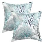 uxcell 枕カバーモダンスロー ホームコントラスト 三角形 抽象線 幾何学的 ソファ用 グリーンフローラル 2パック/ 18 \"x 18\"