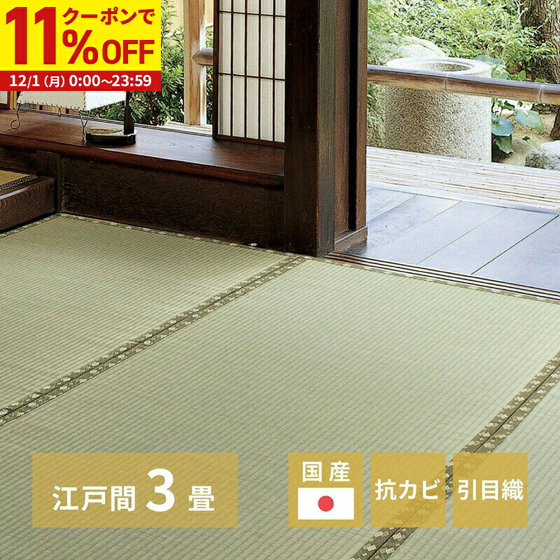 【11%OFFクーポン配布中★12/1に使える】 国産い草カーペット 江戸間 3畳 約174×261cm い草ラグ 畳み上敷き 畳 上敷 カバー ゴザ ござ 琥珀