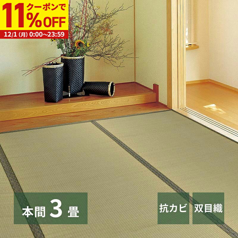 【11%OFFクーポン配布中★12/1に使える】 い草上敷 柳川 (やながわ) 本間 3帖 3畳 双目織 お手頃 リーズナブル 畳の保護