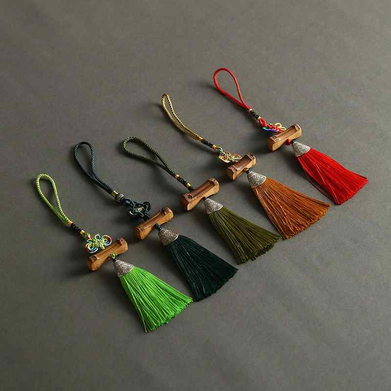 バッグチャーム キーホルダー ストラップ バッグ飾り キーリング 竹製 中国結び タッセル 房飾り 手編み ハンドメイド 自然素材 エスニック アジアンテイスト