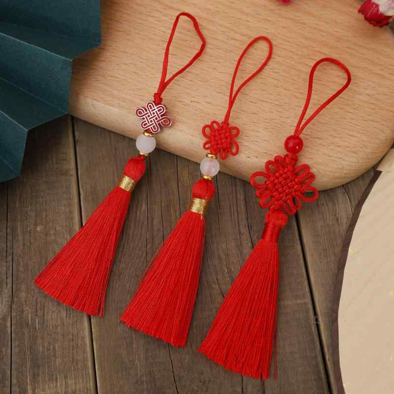 タッセル チャーム 赤 レッド ハンドメイド DIY 手作り フリンジ 房飾り ペンダント 中国結び飾り アクセサリーパーツ キーホルダー ストラップ 和風 雑貨