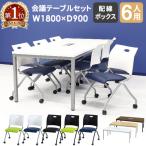 法人限定 会議用テーブル チェア セット ミーティングテーブル 幅1800mm 会議セット 6人用 会議チェア 長机 会議室 打ち合わせ 商談 業務用 GLM-1890H-S14