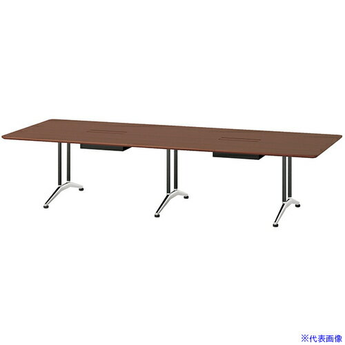 ■NAIKI ミーティングテーブル(配線付 KDF型/天板:ダークウォールナット 脚:ブラック/W3200×D1200×H714 KDF3212AHWN(6789492)[送料別途お見積り][法人限定][掲外取寄]