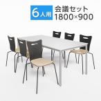法人様限定 ミーティングテーブルセット 6人用 フリーアドレスデスク 会議用テーブル 1800×900 + アメーボ ミーティングチェア 6脚セット