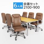 法人様限定 会議テーブルセット 6人用 テーブル チェア 会議テーブル 2100×900 レザーチェア ディレット ローバック キャスター付き 6脚セット