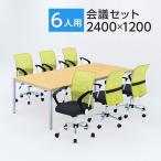 法人様限定 会議テーブルセット 6人用 テーブル チェア 会議テーブル 2400×1200 メッシュチェア 腰楽 ハイバック キャスター付き 肘付き 6脚セット