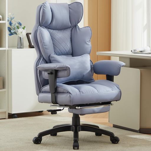 SKYEゲーミングチェア広々座面PUレザー&低反発クッション|135°リクライニング&ランバーサポート|180kg耐荷重デスクチェアオフィスチェア在宅勤務社長椅子(PUレザーライトパープル)