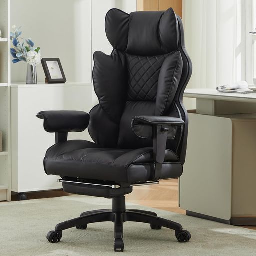 SKYEゲーミングチェア広々座面PUレザー&低反発クッション|135°リクライニング&ランバーサポート|180kg耐荷重デスクチェアオフィスチェア在宅勤務社長椅子(PUレザーブラック)